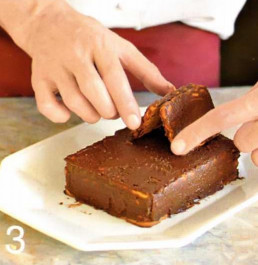 | 1 . Для крема-«цемента» просейте сахарную пудру с какао. Сырки протрите через сито. В сотейнике на слабом огне растопите масло, добавьте пудру с какао и сырки. Тщательно вымесите. Затем снимите с огня и остудите. |