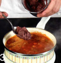 | Время приготовления : 30 минут | | Количество порций : 6 штук | Для того чтобы приготовить фасолевый суп с колбасками Вам понадобится : 3 банки (по 400 гр.) консервированной красной фасоли в собственном соку, 1,5 литра куриного или мясного бульона, по 2 средние луковицы и моркови, 2 зубчика чеснока, 400 гр. консервированных помидоров в собственном соку, 6-8 сырых свиных или бараньих купатов, 1 сладкий перец, 100 гр. сметаны жирностью 42%, 3 ст. ложки растительного масла, 0,5 ч. ложек хмели-сунели, соль и свежемолотый черный перец по вкусу  | 1 . Лук и морковь мелко нарежьте, выложите в большой сотейник, обжарите на растительном масле на небольшом огне до мягкости, 5-7 минут. |  | 2 . Чеснок и сладкий перец мелко нарежьте, всыпьте в сотейник и обжаривать 1-2 минуты. Добавьте помидоры вместе с соком, влейте бульон, доведите до кипения. |  | 3 . 2 банки фасоли (без жидкости) выложите в блендер, смолоть до состояния пюре, добавьте в сотейник с бульоном. |  | 4 . Сразу же добавьте оставшуюся банку фасоли, тоже без жидкости. Доведите до кипения и снять с огня, заправьте специями. Все это можно сделать заранее, даже за день. |  | 5 . Колбаски (купаты) обжарите под грилем или на сковороде до готовности, 10-12 минут при этом несколько раз перевернув. |  | 6 . Нарежьте колбаски кружками толщиной 1-2 см, добавьте в суп. Если суп готовился заранее, прогреть. Подавайте со сметаной. | Ещо новые рецепты |