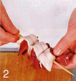жира и нанизать на тонкие шампуры. Посыпаем солью, перцем и кориандром. Обжаривать на гриле в течение 10 минут, пока оболочка из жира не станет коричневой.