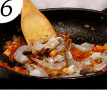 | Время приготовления : 40 минут | | Количество порций : 6 штук | Иггару ройя Вам понадобится : 24-36 крупных сырых креветок, 2 крупных помидора, 2 небольшие луковицы, 3 см свежего корня имбиря, 8 зубчиков чеснока, 1-4 красных перца чили, 1 небольшой пучок кинзы, половина небольшого кокоса, 100 мл растительного масла, 1 ч. ложку семян зир, ы 0,5 ч. ложек семян пажитника, 1 ч. ложку смеси черного и душистого перца горошком, щепотка сахара, соль, длиннозерный рис для подачи  | 1 . Очистите креветки от панциря, при желании оставив хвостики. Надрежьте спинку по центру, удалите темную кишечную вену. Обсушите креветки бумажными полотенцами. |  | 2 . Очистите лук, чеснок и имбирь. Лук нарежьте мелкими кубиками, имбирь и чеснок натрите на терке. У чили удалите семена и перего-родки, нарежьте мякоть тонкими полукольцами. Помидоры нарежьте небольшими кубиками. |  | 3 . С кокоса срежьте ножом для чистки овощей коричневую кожицу, натрите мякоть ореха на крупной терке. Подсушите кокосовую стружку на сухой сковородке до золотистого цвета. |  | 4 . Нагрейте треть масла в кастрюльке, обжарьте семена зиры, пажитника и перец горошком, 30 секунд. Добавьте немного соли, разотрите в ступке до однородности. |  | 5 . В большой сковороде нагрейте оставшееся масло, обжарьте лук до прозрачности, 3 минуты. Добавьте чили, тертый имбирь и чеснок, готовьте 2 минуты. Добавьте помидоры, сахар, соль и специи из ступки, готовьте еще 3 минуты. |  | 6 . Положите в сковороду креветки и обжаривайте, помешивая, пока они не будут готовы, примерно 3 минуты. Разложите по тарелкам креветки в соусе, посыпьте кокосовой стружкой и листочками кинзы. Подавайте сразу же, с рисом. | |