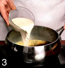 3 . Когда жидкость закипит, отсчитайте 1 минуту и добавьте чай. Через 30 секунд влейте молоко и доведите до кипения. Всыпьте сахар и варите еще 30 секунд Сразу же разлейте по чашкам, процеживая через сито.