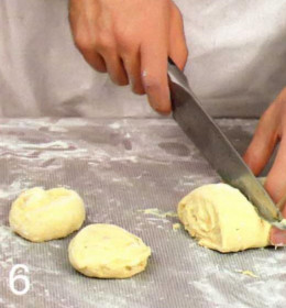 | 1 . Картофель очистите, нарежьте кубиками. положите в сотейник, залейте кипящей водой так, чтобы она едва покрывала картофель. Сварить до готовности, примерно 15 минут. Остудить в отваре примерно до 40 °С, затем откинуть на дуршлаг, отвар сохранить. Размять картофель в пюре |  | 2 . Лук очень мелко нарежьте и обжарьте на слабом огне в 4 ст. ложки масла до золотистого цвета, 15 минут. Смешайте лук вместе с маслом, в котором он жарился, с картофельным пюре. |  | 3 . Отмерить 1 стакан картофельного отвара. Всыпать в отвар дрожжи с щепоткой сахара, перемешайте и оставьте на 10 минут - смесь должна начать пениться. | | 4. Просеять 3 стакана муки горкой. В центре сделать углубление - «колодец» - и всыпать оставшийся сахар и 1,5 ч. ложки соли. Влейте дрожжевую смесь, добавьте картофель с луком и еще 1 ст. ложка масла, замесить тесто. | | 5 . Вымесить тесто до эластичности, при необходимости подсыпая еще муки. Сформировать шар, смазать маслом, положите в чистую миску, накрыть и оставьте в теплом месте на 2 часа. За это время один раз обмять тесто. | | 6 . Разделейте тесто на 2 части, раскатать каждую в прямоугольник толщиной 1,5 см. Скатать в рулеты и разрежьте каждый поперек на 10 кружков-булочек. Разложите булочки на застеленные пергаментом противни, смазать желтком, дать расстояться 15 минут, затем выпекать при 180 °С до золотистого цвета, 20-25 минут. Подавать теплыми. | Другие вкусные рецепты |