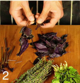- 1 большой пучок смеси трав (кинза, тимьян, фиолетовый базилик)