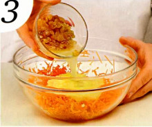 | Время приготовления : 2 часа + 2 часа | | Количество порций : 10 штук | Морковный пирог Вам понадобится : 2 крупные морковки, 1 банка (400 гр. ) консервированных ананасов, 100 гр. изюма, 100 гр. грецких орехов, 1 большой апельсин, 120 гр. меда, 1 стакан растительного масла, 2 стакана муки, 3 ст. ложки какао-порошка, 2 ст. ложки кукурузного крахмала, 1 ст. ложку разрыхлителя, 0,5 ч. ложек соды Для глазури : 1 стакан сахарной пудры, апельсиновый сок  | 1 . Откройте банку с ананасами, слейте жидкость в миску. Положите туда же промытый изюм и оставьте так на 1-3 часа. Ананасы взбейте блендером в пюре. |  | 2 . Разогрейте духовку до 180 °С. Очистите морковь и натрите ее на мелкой терке. Вымойте апельсин щеткой, сотрите мелкой теркой цедру. Разрежьте апельсин пополам, выжмите сок. Смешайте сок и цедру с морковкой. |  | 3 . Смешайте морковь с ананасовым пюре. Добавьте изюм вместе с жидкостью и растительное масло. Чуть прогрейте мед, добавьте туда же, тщательно перемешайте. |  | 4 . Порубите орехи довольно мелко. Просейте муку с какао-порошком, крахмалом, содой и разрыхлителем, добавьте орехи. |  | 5 . Смешайте мучную массу и морковную, тщательно перемешайте. Выстелите форму для запекания бумагой для выпечки, смажьте бумагу растительным маслом. Качественную силиконовую форму достаточно сбрызнуть водой. Выложите тесто, немного разровняйте и поставьте в духовку. Выпекайте пирог 1 час. При необходимости выпекайте еще 10-20 минут, затем остудите в форме на решетке, 15 минут, и переверните на блюдо. Снимите бумагу. |  | 6 . Для глазури смешайте сахарную пудру с таким количеством апельсинового сока, чтобы получилась текучая масса. Покройте глазурью теплый пирог и остудите, 2 часа. | |