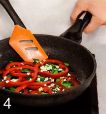 | Время приготовления : 30 минут | | Количество порций : 4 - 6 штук | «пицца» с морепродуктами Вам понадобится : 300 гр. колотого зеленого гороха, 4 больших баклажана, 2 большие морковки, 3 большие луковицы, 5-6 зубчиков чеснока, 5 ст. ложки свежих хлебных крошек, оливковое масло, соль и свежемолотый черный перец по вкусу  | 1 . У филе кальмара удалите пленки с обеих сторон и хитиновую пластину (если есть). Нарежьте филе кальмара тонкой соломкой. |  | 2 . Креветки очистите от панцирей, по спинке сделайте неглубокий надрез, удалите темную кишечную вену, помогая себе полотенцем. Затем полностью разрежьте креветки вдоль пополам. |  | 3 . Сладкий перец очистите от сердцевины, нарежьте поперек тонкими кружками. Чеснок очистите и измельчите. |  | 4 . В большой сковороде с толстым дном разогрейте масло, уложите перья зеленого лука, подравнивая их в соответствии с размером сковороды. Сверху положите кружки перца. Обжаривайте на среднем огне 5 минут. |  | 5 . Выложите поверх перца филе кальмара и креветки (не перемешивая!). Готовьте еще 3 минут. |  | 6 . Яйца взбейте с мукой и солью, залейте содержимое сковороды. Готовьте, при необходимости закрыв крышкой, пока яичная масса не будет готова полностью, 7-10 минут. Подавайте немедленно. | |