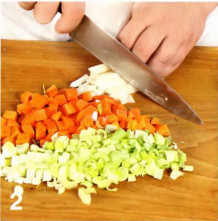 рассыпчатый плов +с курицей  2 . Морковь и корень петрушки очистите, а лук-порей тщательно промойте. Нарежте овощи крупными кусками.