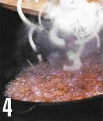 4 . Добавить пук и, помешивая, обжарить до золотистого цвета и хруста, иначе мясо будет тушиться, а не жариться. |