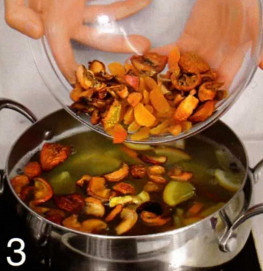 | Время приготовления : 25 минут + 4 часа настаивания | | Количество порций : 8-10 штук | компот из сухофруктов Вам понадобится : 150 гр. кураги, 200 гр. сушеных яблок, 150 гр. сушеных груш, 1 лимон 1 апельсин, 3 см свежего корня имбиря, 2-3 палочки корицы, 5-7 бутонов гвоздики, 1 ч. ложку горошин душистого перца  | 1 . Имбирь очистите, нарежьте тонкими ломтиками. Вымойте апельсин и лимон щеткой, нарежьте небольшими кусочками. Сложите цитрусовые и имбирь в большую кастрюлю, залейте 2 литра холодной воды. |  | 2 . Добавьте в кастрюлю разломанные палочки корицы, гвоздику и душистый перец. На небольшом огне доведите до кипения, варите 15 минут. |  | 3 . Курагу по желанию оставьте целой или разрежьте пополам. Положите все сухофрукты в кипящую воду со специями и цитрусовыми, перемешайте, доведите до кипения. Снимите с огня, закройте крышкой и настаивайте 4 часа. | |