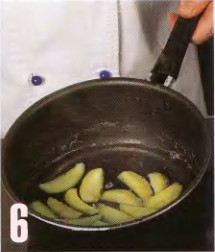 6 . Картофель очистите, нарежьте дольками и отварите в отдельной кастрюле до полуготовности после чего откиньте на дуршлаг.