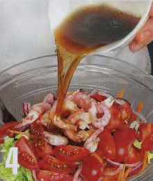| Время приготовления : 35 минут . | | Количество орций : 4 штуки | | Колорий : 1 порция : 190,1 ккал | Салат Вьетнамский Вам понадобится : 2 ст. ложки растительного масла, 0,5 стакана орехов кешью, 300 гр. китайской капусты, 1 морковь,0,5 красной луковицы,8 томатов черри,12 крупных креветок,1 стакан зелени кинзы, мяты ибазилика,кусочек свежего имбиря длиной 1 см, Для заправки : 100 мл рисового (или белоговинного)уксуса,1 ст. ложка коричневого сахара, 0,5 ч. ложки сушеного молотого чили. Приготовление :  | 1 . Разогрейте в сковороде растительное масло, добавьте орехи кешью, и готовьте на среднем огне, постоянно помешивая, пока орехи не станут золотистого цвета. Достаньте орехи шумовкой и выложите на бумажное полотенце, чтобы впитался лишний жир. |  | 2 . Китайскую капусту вымойте, обсушите и тонко нарежьте. Морковь очистите, вымойте и нарежьте соломкой. Лук очистите и нарежьте полукольцами. Помидоры черри вымойте, удалите плодоножку и разрежьте на четвертинки. Выложите овощи в миску и перемешайте. |  | 3 . Как приготовить заправку. В сотейник влейте уксус, добавьте сахар и молотый чили. Поставьте на огонь и доведите до кипения, постоянно помешивая, чтобы растворился весь сахар. Снимите с огня и дайте остыть до комнатной температуры. Посолите по вкусу. |  | 4 . Креветки отварите, остудите и очистите. Зелень вымойте, обсушите бумажными салфетками и мелко нашинкуйте. Имбирь очистите и натрите на крупной терке. Кешью крупно нарубите ножом. Добавьте орехи, креветки, зелень и имбирь в салат. Полейте заправкой и можете подаваит на стол. | | Предлагаем посмотреть рецепты на пасху: |