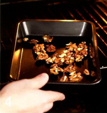 | Время приготовления : 2 часа | | Количество порций : 8 -10 штук | салат из курицы с орехами Вам понадобится : 1 небольшая курица, 5 яиц, 1 стакан грецких орехов, 1 стакан длиннозерного риса, 3 небольшие луковицы, соль, свежемолотый черный перец, растительное масло Для домашнего майонеза: 2 стакана растительного масла, 2 желтка крупных яиц, 4 ч. ложки лимонного сока, 1 ч. ложку горчицы, щепотка сахара, соль  | 1 . Для майонеза взбейте желтки с солью, горчицей, сахаром, перцем и лимонным соком, чтобы смесь стала лимонно-желтой. Начните добавлять масло буквально по капле, не переставая энергично взбивать. |  | 2 . Добавьте еще 1 ч. ложку лимонного сока и 1 ч. ложку воды. Влейте очень тонкой струйкой 0,5 стакана масла, не останавливая процесс взбивания ни на миг. Добавьте оставшийся лимонный сок и 1 ч. ложку воды, а потом таким же образом оставшееся масло. |  | 3 . Очистите лук и нарежьте очень тонко четвертинками колец. Обжарьте в растительном масле до золотисто-коричневого цвета. |  | 4 . Грецкие орехи обжарьте в разогретой до 170 °С духовке на противне и измельчите. |  | 5 . Курицу отварите в подсоленной кипящей воде до готовности, примерно 45 минут. После того как она остынет, снимите мясо с костей, удалите кожу, мякоть мелко нарежьте |  | 6 . В оставшемся от курицы бульоне сварите рис до готовности, откиньте на сито, остудите. Яйца отварите вкрутую, остудите под холодной водой, очистите от скорлупы и нарежьте кубиками. Курицу, яйца, грецкие орехи и рис смешайте с майонезом, приправьте солью и перцем, дайте немного настоутяться. | |