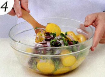 | | 1 . Очистите картофель (молодой можно оставить в кожуре) и сварите в подсоленной воде до мягкости. Слейте воду и разрежьте картофель пополам или четвертинками, если он крупный. Оставьте целиком, если мелкий. | | | 2 . Пока картофель варится, смешайте 4-5 ст. ложек масла с лимонным соком, паприкой, зирой, острым перцем и солью. | | | 3 . Измельчите петрушку. Очистите и тонко нарежьте красный лук. Раздавите маслины и удалите косточки. | | |  4. Пока картофель не остыл, хорошо смешайте его с заправкой, добавьте петрушку, лук, маслины и слегка перемешайте. | Ещо новые рецепты |