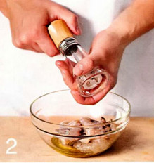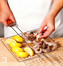 | Время приготовления : 30 минут | | Количество порций : 4 -6 штук | салат с креветками Вам понадобится : 4 молодых цукини или кабачка, 200 гр. небольших шампиньонов, 150 гр. спаржи Для заправки : 1 спелое авокадо, 2 лайма, сок 1 крупного апельсина, 1 маленький пучок кинзы, 2 зубчика чеснока, оливковое масло, соль и свежемолотый черный перец по вкусу  | 1 . Цукини нарежьте вдоль тонкими ломтиками, приправьте солью и перцем, сбрызните оливковым маслом, оставьте на 15 минут |  | 2 . Протрите шампиньоны салфеткой, отрежьте жесткие концы ножек. Разрежьте грибы вдоль на четвертинки. Сбрызните грибы оливковым маслом, солью и перцем. |  | 3 . У спаржи отломите жесткие кончики стеблей, очистите стебли примерно на две трети снизу при помощи ножа для чистки овощей. Посолите спаржу, поперчите и сбрызните оливковым маслом. |  | 4 . Для заправки с лаймов снимите теркой цедру, выжмите сок, влейте в блендер, добавьте сок апельсинов. Кинзу и чеснок измельчите. |  | 5 . Очистите авокадо от кожуры, удалите косточку, мякоть положите в блендер, добавьте кинзу, чеснок и цедру Взбейте до однородности, приправьте солью и перцем. |  | 6 . Положите все овощи в решетку, обжарьте над хорошо прогоревшими углями до легкой румяной корочки. Выложите на блюдо, полейте заправкой и сразу же подавайте. | |