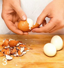 | Время приготовления : 30 минут | | Количество порций : 4 - 6 штук | яичный салат в бокалах Вам понадобится : 10 крупных яиц, 400 гр. тамбовского окорока или буженины, 3 средние луковицы, 3 ст. ложки каперсов, растительное масло, шнитт-лук для украшения Для зеленого майонеза: 1 большое яйцо, 1 ст. ложка дижонской горчицы, 1 ст. ложка лимонного сока, 2 стакана растительного масла, 0,5 стакана оливкового масла, 70-100 гр. зеленого лука, по 0,5 ч. ложки соли и сахара, свежемолотый белый перец  | 1 . Для майонеза доведите все ингредиенты до комнатной температуры. Мелко нарежьте зеленый лук, смешайте с оливковым маслом, добавьте 3-4 ст. ложки теплой питьевой воды и взбейте в блендере до однородности. |  | 2 . Разбейте в чистую чашу блендера яйцо, добавьте соль, сахар, лимонный сок и горчицу. Влейте столько же (по объему) масла, сколько у вас занимают остальные ингредиенты. Взбивайте на небольшой скорости до однородности. Затем тонкой струйкой при работающем моторе влейте оставшееся масло. При помощи лопаточки соедините получившийся густой майонез с пюре из зеленого лука и приправьте перцем. |  | 3 . Вскипятите воду в кастрюле, посолите, аккуратно, ложкой опустите в нее яйца комнатной температуры. Псле закипания варите на слабом огне 8 минут. Слейте воду, поставьте кастрюлю под проточную холодную воду на 5 минут. Очистите яйца от скорлупы и полностью остудите. Или возьмите оставшиеся от Пасхи яйца |  | 4 . Очистите лук и нарежьте тонкими четвертинками колец. Разогрейте в большой сковороде существенный слой масла, положите лук, посолите и жарьте на среднем огне до хрустящего состояния, примерно 20 минут, часто помешивая. Готовый лук выложите на бумажные полотенца, чтобы стекло масло. |  | 5 . Половину желтков отложите. Нарежьте белки и оставшиеся яйца аккуратными средними кубиками. Примерно так же нарежьте ветчину. Порубите каперсы и смешайте с ветчиной. |  | 6 . В прозрачные стаканчики (или в бокалы роке) выложите слоями немного майонеза, ветчину с каперсами, жареный лук, нарезанные яйца и майонез. Натрите на майонез желтки на терке. Подавайте сразу же. | |