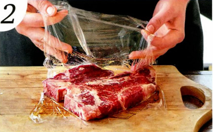 | |  1 . Лучше всего купить стейки заранее. Заверните их по отдельности в пергамент, положите в холодильник на 24-48 часов.
