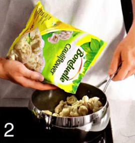 | Время приготовления : 30 минут | | Количество порций : 4 штуки | суп из брокколи Вам понадобится :1 упаковка замороженной цветной капусты (400 гр. ), 1 упаковка замороженной брокколи (400 гр. ), 1 средний цукини, 1 черешок сельдерея, 1 средняя луковица, 1 зубчик чеснока, 1 ч. ложку черного кунжута, 3 ст. ложки оливкового масла, соль, черный перец 2 кукурузные лепешки для подачи  | 1 . Брокколи, не размораживая, положи-' те в кастрюлю вместе с произвольно нарезанными цукини и сельдереем. Влейте столько питьевой воды, чтобы она покрыла овощи на 1-1,5 см. На сильном огне доведите до кипения, уменьшите огонь да слабого, посолите, поперчите, закройте крышкой и варите до готовности капусты, примерно 15 минут. |  | 2 . Очистите и крупно нарежьте лук. Обжарьте его в 2 ст. ложки оливкового масла до мягкости примерон 5 минут. Затем в чистую кастрюлю точно так же, как в случае с брокколи, положите цветную капусту и лук, залейте водой и сварите до готовности. |  | 3 . Оба вида супа измельчите прямо в кастрюлях по отдельности с помощью погружного блендера в гладкое пюре. |  | 4 . Пока варится суп, готовые кукурузные лепешки нарежьте треугольниками (это удобно делать с помощью ножниц), разложите в один слой на противне и поставьте в разогретую до 180 °С духовку на 5 минут, чтобы подсушить до хрустящей корочки. Для подачи чуть подогрейте тарелки. В каждую тарелку сначала налейте зеленый суп. Затем аккуратно сверху влейте белый. |  | 5 . При помощи деревянной шпажки сделайте узор. Налейте «ниточку» оливкового масла, немного посыпьте солью среднего помола и обжаренным на сухой сковороде черным кунжутом. Подавайте с кукурузными лепешками. |  | 6 . Готовый картофель разрежьте вдоль пополам, выньте мякоть из середины так, чтобы остались толстые стенки. Смешайте мякоть с начинкой и нафаршируйте картофель. | |