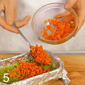 Ну что такое террин я думаю не нужно говорить а если всётаки нужно то это это название пошло от посуды в которой готовится. Террин можно готовить из овощей, мяса, рыбы это чтото на подобие намазки для наших всем известных бутербродов.  | Время приготовления : 1 час 25 минут | | Количество порций : 6 штук | террин из горох Вам понадобится : 300 гр. колотого зеленого гороха Орегон, 4 больших баклажана, 2 большие морковки, 3 большие луковицы, 5-6 зубчиков чеснока, 5 ст. ложки свежих хлебных крошек, оливковое масло, соль и свежемолотый черный перец по вкусу  | 1 . Горох залейте холодной водой и сварите до абсолютной мягкости согласно инструкции на упаковке. Откиньте на сито и дайте стечь всей жидкости |  | 2 . Очистите лук, чеснок и морковь. Лук и чеснок нарежьте очень мелко, морковь - красивыми мелкими кубиками. Обжарьте по отдельности в оливковом масле лук с чесноком и морковь. Морковь должна стать мягкой, а лук - золотистым |  | 3 . Растолките горох так, чтобы половина сохранилась неразмятой. Смешайте горох с луком и чесноком, приправьте оливковым маслом, солью и перцем. |  | 4 . Разогрейте духовку до 180 °С. Нарежьте баклажаны вдоль пластинами толщиной до 1 см. Смажьте каждую с обеих сторон оливковым маслом, посолите и поперчите, выложите на застеленные бумагой для выпечки противни и запекайте в духовке до мягкости, 1 раз перевернув, примерно 20 минут. |  | 5 . Застелите прямоугольную форму фольгой, хорошо смажьте ее маслом. Слоями выложите гороховую массу и баклажаны, в центр - слой морковки, приправив ее солью и перцем Закройте форму фольгой и запекайте ищо 40 минут. |  | 6 . Обжарьте хлебные крошки в масле с солью и перцем до золотистого цвета. Слегка остудите террин в форме. Разверните фольгу, аккуратно переверните террин на блюдо, посыпьте крошками | |