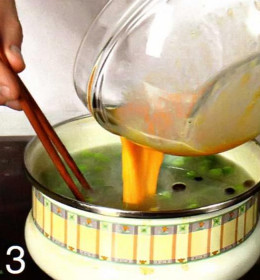 | 1 . В небольшой мисочке смешайте крахмал с 3 ст. ложки воды. Довести до кипения бульон, добавьте, не размораживая, горошек, соль и перец, еще раз доведите до кипения. |  | 2 . Влейтев бульон смесь крахмала и воды (предварительно еще раз размешав, варите, все время помешивая, до загустения примерно 1 минуту и снимите с огня. |  | 3 . Пока бульон закипает, слегка взбейте в миске яйца. В снятый с огня бульон влейте яйца и быстро размешайте палочками, сделав три энергичных «круга» по кастрюле. Закройте крышкой и оставьте на 2 минуты. Подавайте, посыпав кинзой и колечками чили, по желанию - с соевым соусом. | Ещо новые рецепты |