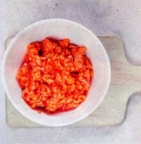 | | 1 . Нарежьте рыбное филе небольшими кусками и измельчите в фарш при помощи тяжелого ножа. |